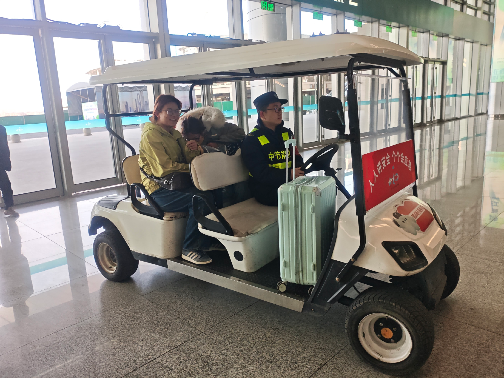 秩序维护:严管厚爱并举。 严格执行 24 小时三班轮岗机制,筑牢安全防线;同步推出“暖心接驳车”巡回服务100余次,主动为携带大件行李及老弱病残孕等重点旅客提供帮扶,让其出行之路更平安、更顺畅。