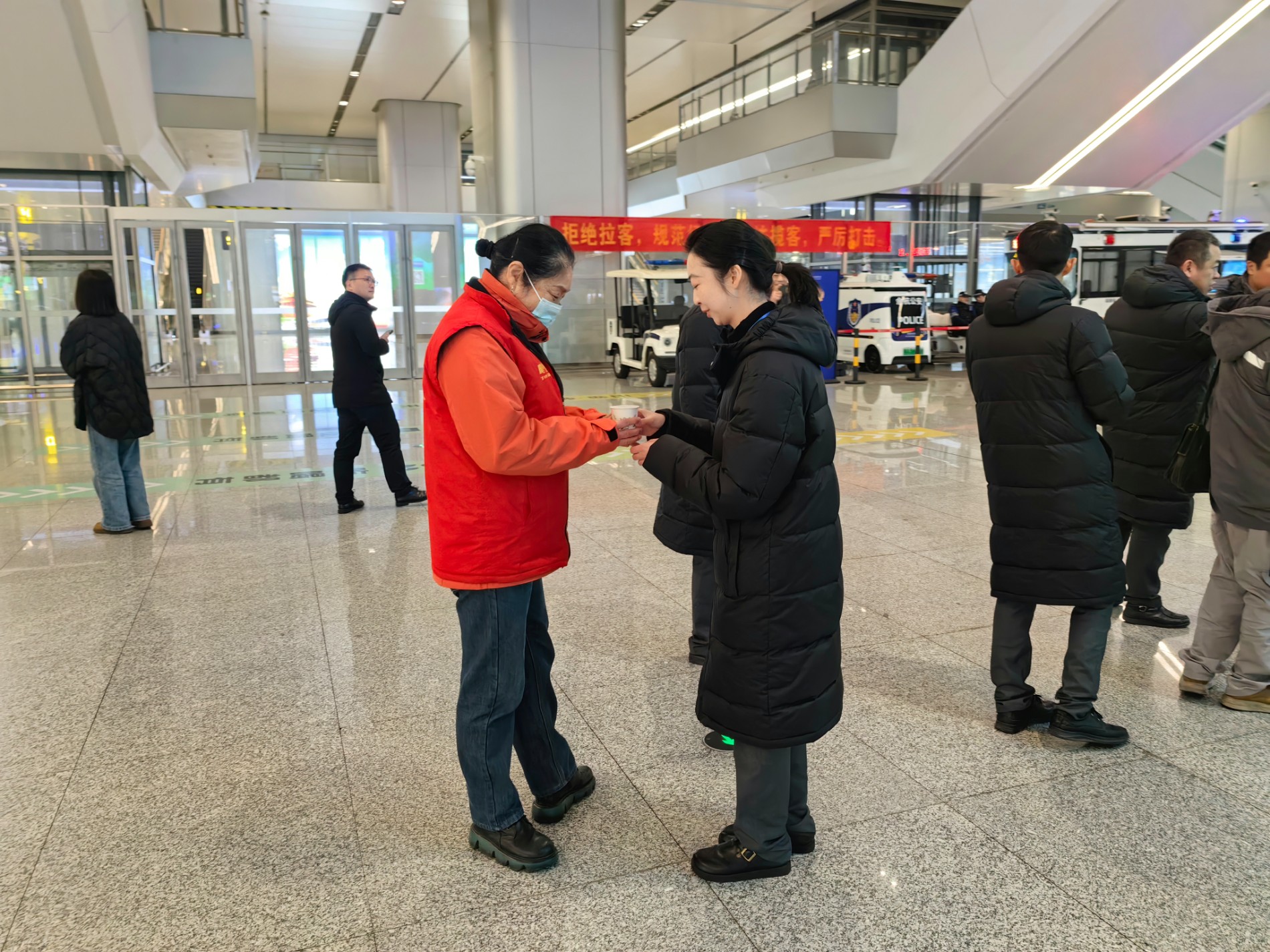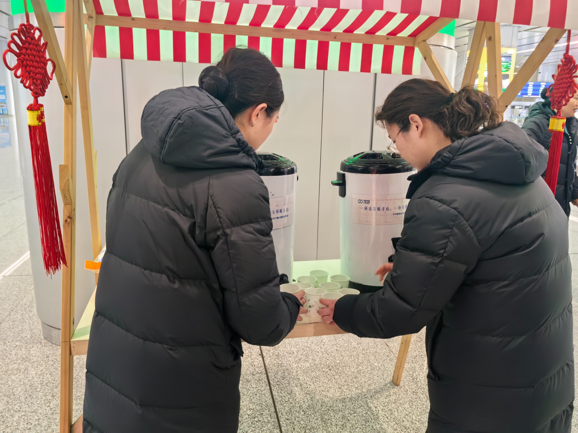 一杯杯红糖姜茶,承载着中节能物业的贴心与关怀,不仅拉近了物业与旅客、一线员工之间的距离,更让杭州西站的冬日充满了温情与暖意,彰显了物业团队 “用心服务,温暖相伴” 的服务理念。