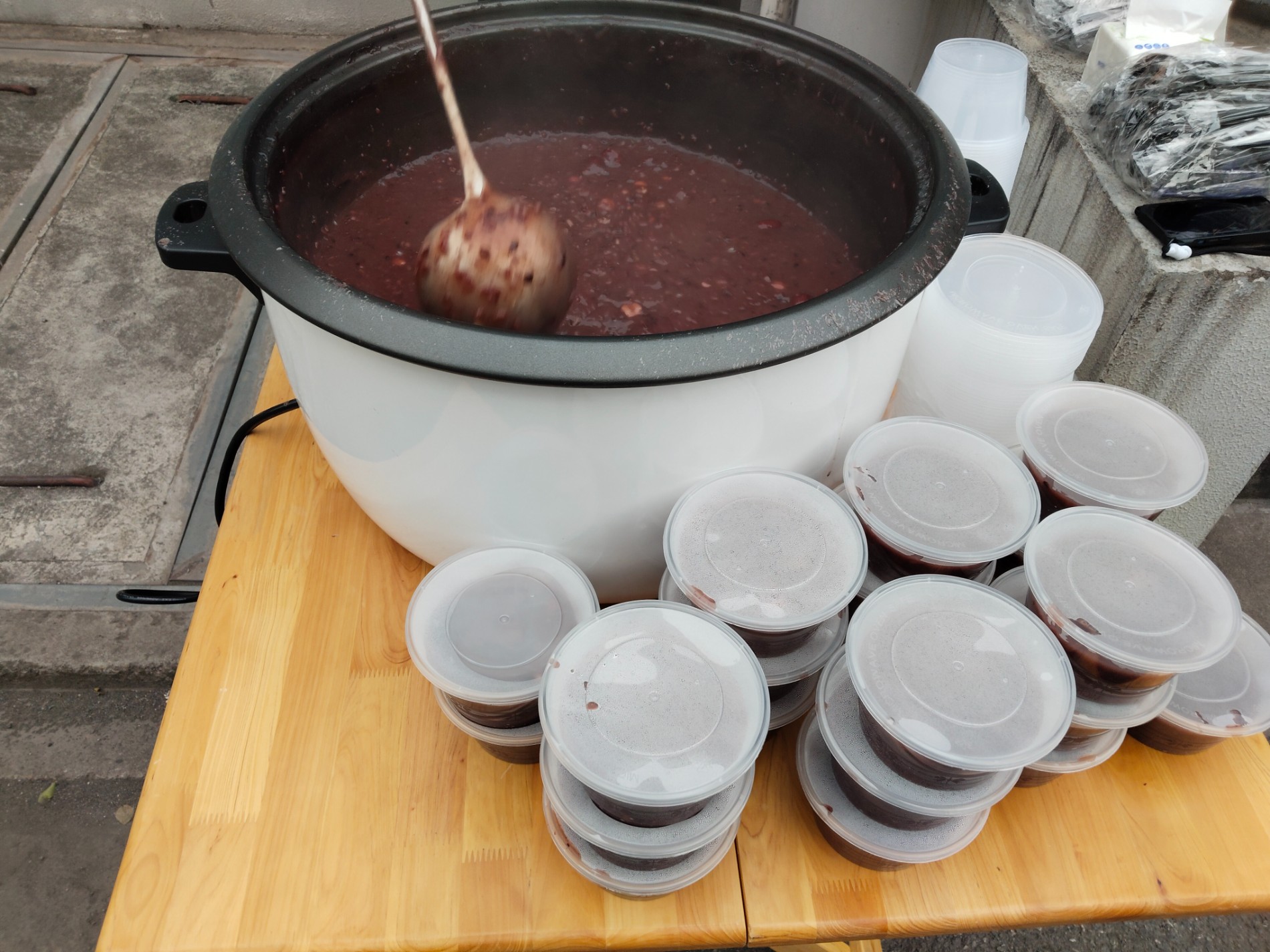 1月26日,诸暨分公司工作人员将提前采购的糯米、红豆、红枣、桂圆、莲子、花生、黑米等八种食材洗净备好,在大锅中文火慢熬。经过近三个小时的精心炖煮,一锅锅色泽鲜亮、香气四溢的腊八粥新鲜出锅,黏稠的粥品裹着各类食材的香甜,袅袅热气中满是幸福的味道。随后有条不紊地为前来领取腊八粥的园区企业员工们盛粥、递碗,“寒冷的天气里来上一碗腊八粥,能感受到节日的氛围,我们心里都暖暖的”。大家手捧温热的粥碗,脸上都洋溢着满足的笑容。“这粥熬得真地道,甜而不腻,喝着心里暖乎乎的!”业主们纷纷为物业人送上大拇指。