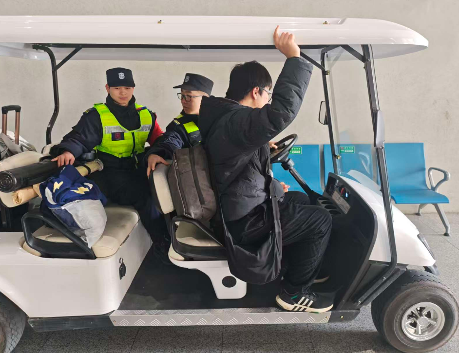 秩序维护:严管厚爱并举。 严格执行 24 小时三班轮岗机制,筑牢安全防线;同步推出“暖心接驳车”巡回服务100余次,主动为携带大件行李及老弱病残孕等重点旅客提供帮扶,让其出行之路更平安、更顺畅。